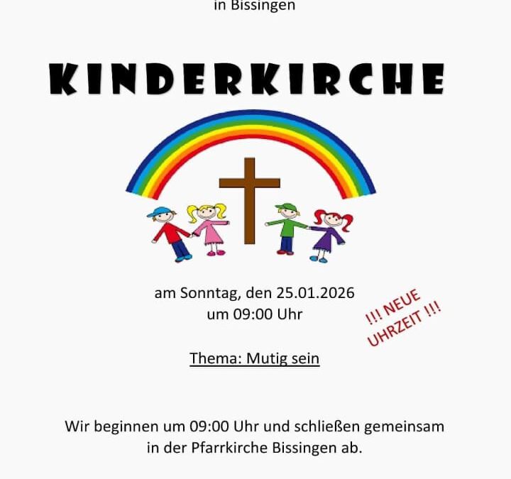 Am Sonntag, 25.01.2026 findet um 9.00 Uhr Kinderkirche im Pfarrheim Bissingen statt.